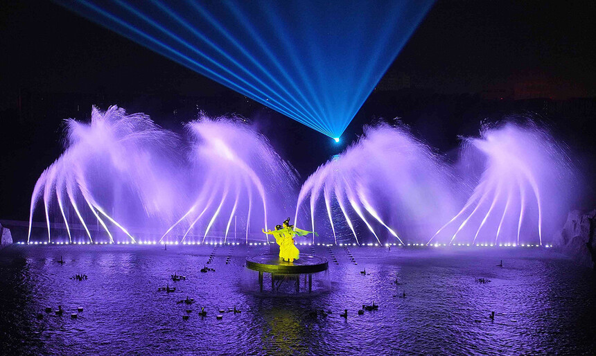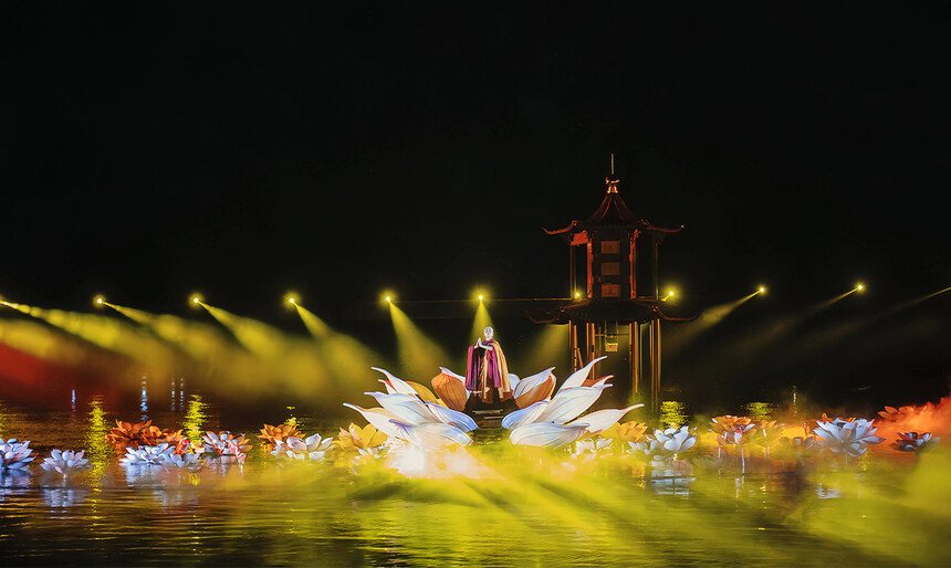 天臺始豐湖和合文化主題行浸式濱水夜游。以“和合文化”為核心表達,發掘及利用天臺地方文化和歷史故事,建設“詩心自在”文旅高地,打造“現代化和合之城”文旅新引擎,帶領市民游客于始豐湖的山水神秀和魅力光影之中體悟佛宗道源的絕美境界。榮獲2024年沉浸式夜游演繹“靈境獎”,入選浙江省夜間文化和旅游消費新業態新場景新產品優秀案例、2024年浙江省幸福河湖“十佳水旅融合景點”、浙江省第二批文化基因激活工程標志性項目。