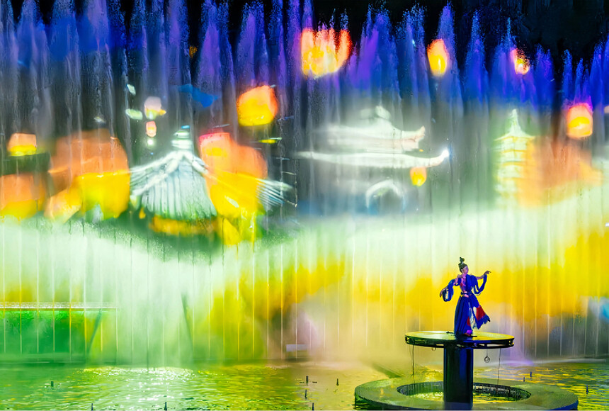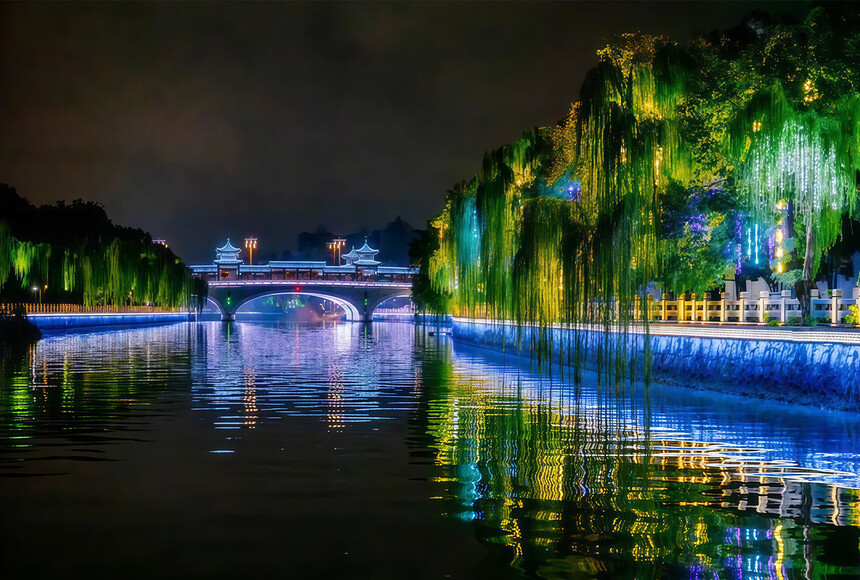 揚州古運河行進式游船夜游演藝。以科技為手段,運用光影藝術,將演藝融入城市水岸實景,帶領游客解鎖沉浸式文旅夜游新體驗,于流光溢彩之間,感悟大運河與揚州往日的榮光與未來的希望,助力揚州濱水空間提質煥新,打造大運河文化帶全域旅游發展新模式,進一步推動大運河優秀歷史文化遺產現代打開、立體呈現。