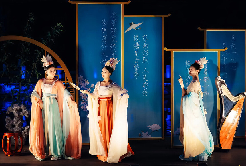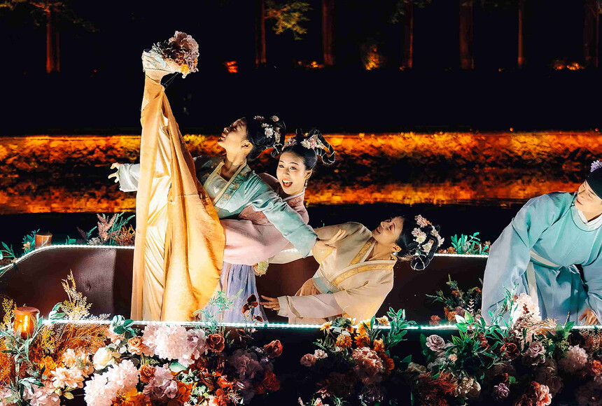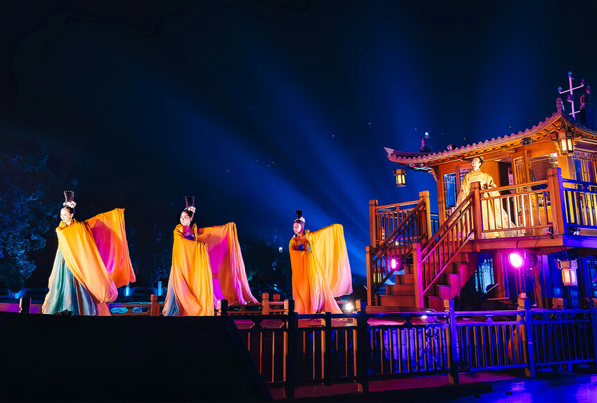 杭州上塘河大型宋詞文化主題行浸式濱水夜游。從燦若星河的宋詞中,提取李煜、蘇軾、李清照、岳飛、辛棄疾等九位詞人的生平故事,以詩、詞、文為脈絡,以歌、舞、戲為語言,在杭州的上塘古運河之上為觀眾展開一幅波瀾壯闊的宋韻風情畫卷,帶領人們沉浸式體驗千年古運河的文化底蘊,構建杭州夜間文旅消費新場景,推動大運河世界文化遺產創造性轉化和創新性發展。榮獲第十七屆中照照明獎,入選中國大運河拱墅十景、浙江省“首批文化解碼成果轉化利用示范項目”、第一批“大運河文化研究重要窗口”、浙江省第二批文化基因激活工程標志性項目。