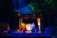 在打造的沉浸式舞臺上,《宜昌1938》以恢弘的史詩感與細膩的情感張力震撼上演。舞臺通過多層次機械升降結構與270°環繞投影,再現抗戰時期宜昌碼頭硝煙彌漫的逼真場景:銹蝕的輪船殘骸、懸吊的集裝箱裝置與斑駁的磚墻形成極具壓迫感的視覺符號。動態紗幕投影將歷史影像與江水波濤交融,配合爆破特效與精準追光,刻畫軍民搶運物資的生死時速。中央轉臺旋轉變換碼頭、倉庫、江岸等空間,演員在虛實交織中完成時空跳轉。當主題曲《歸航》響起,漫天“星光”與真實水霧籠罩舞臺,象征民族血淚與希望的“長江纖夫”群像雕塑從地臺緩緩升起,以極具儀式感的舞臺語匯,完成對英雄之城的歷史禮贊。
